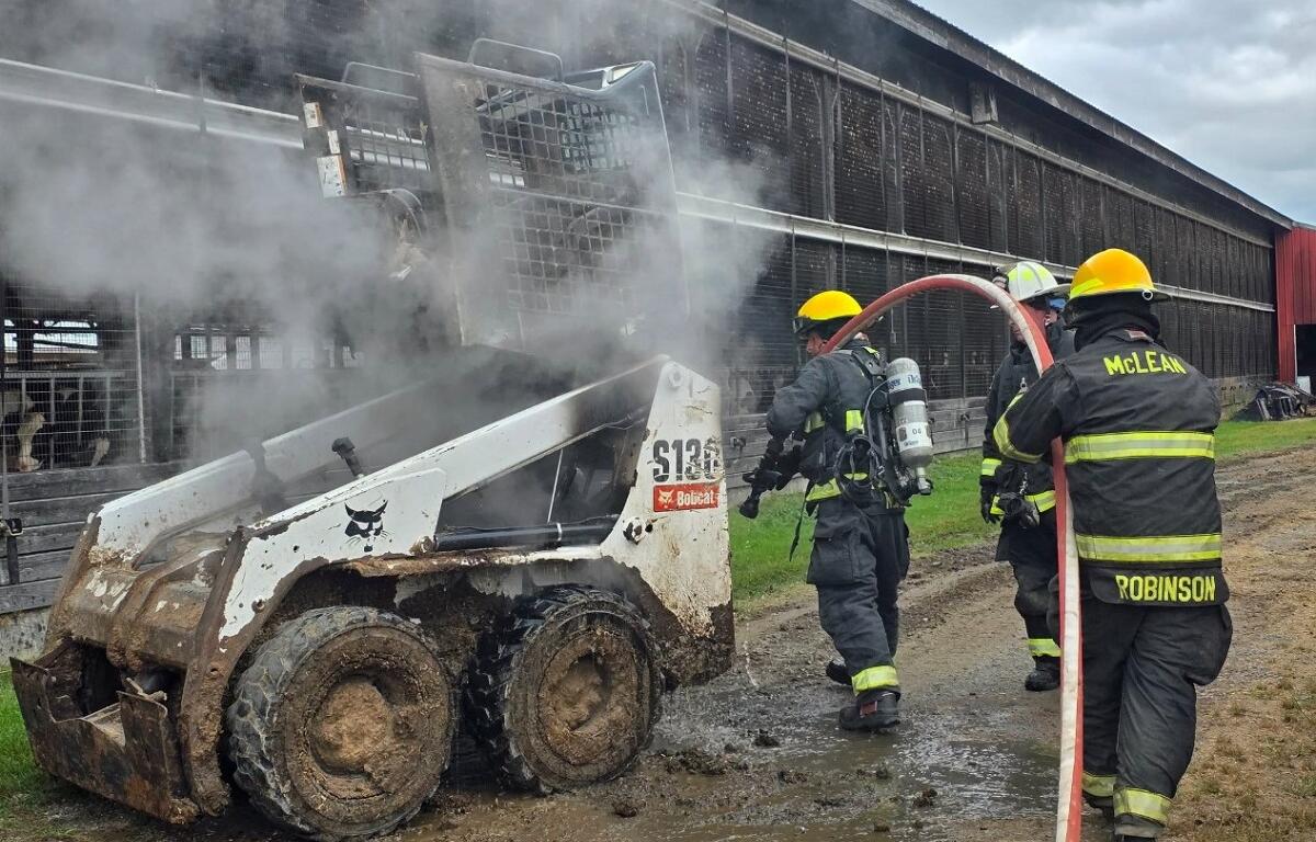 The source of the blaze was a skid-steer. Firefighters and farm staff dragged the disabled and burning heavy loader out of the structure and extinguished the flames.