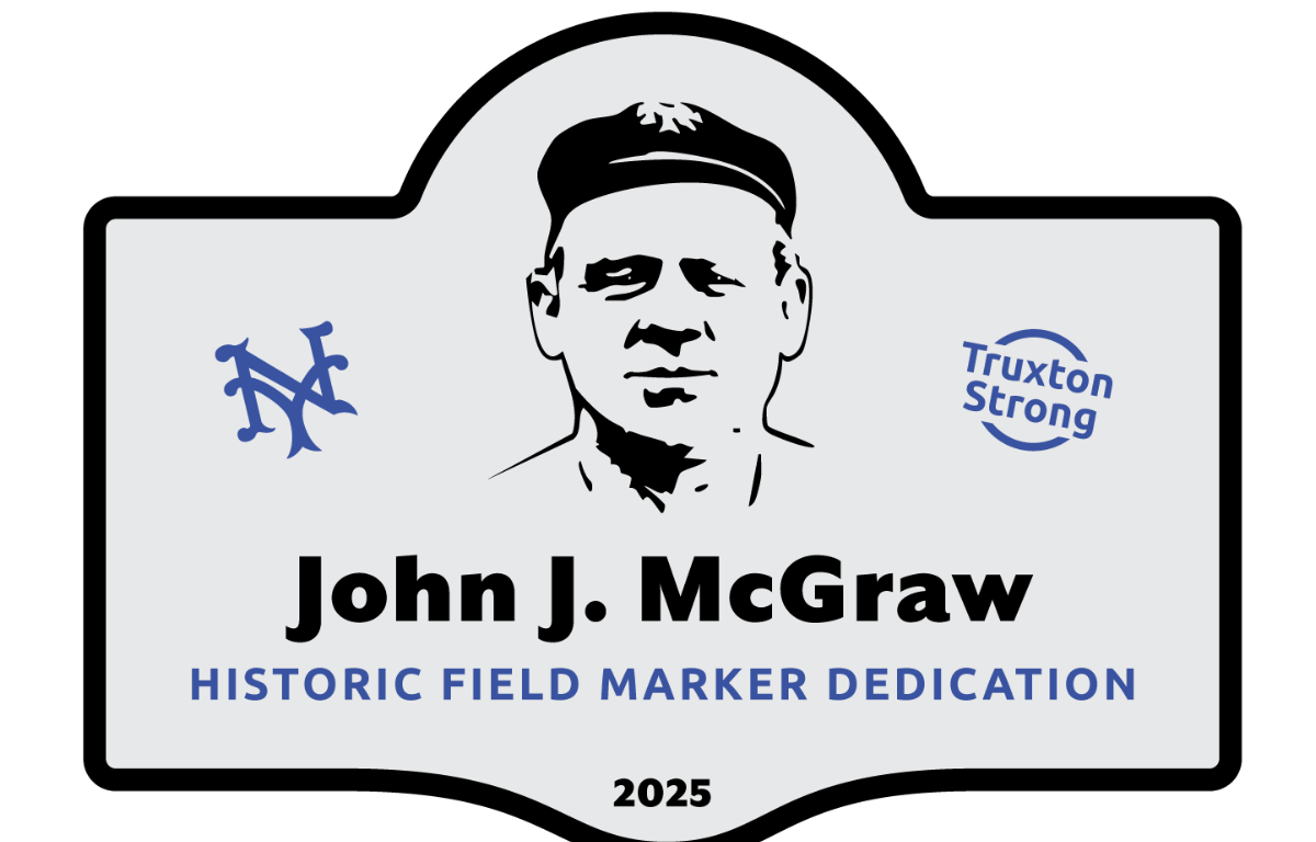 According to a news release, “John J. McGraw grew up and played local baseball in Truxton and became a Hall of Fame baseball manager after a respectable playing career. Over his career, McGraw won 2,763 games (third only to Connie Mack and Tony LaRussa), 10 National League pennants and three World Series. He owns the record for the longest winning streak in Major League Baseball history. McGraw pioneered tactics still used today, including the Baltimore chop, the hit-and-run, and the squeeze play.”