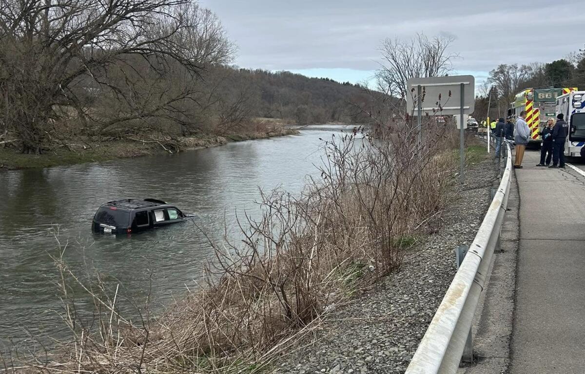 Authorities said a car had crashed on Route 11, and the vehicle was floating in the Tioughnioga River. They said the driver was trying to get out of the vehicle in the water.