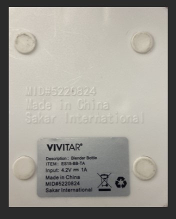 Affected products have “ITEM: ES15-BB-TA” and “MID #522084” printed on a sticker located under the plastic white base of the bottle. “MID #522084” is additionally stamped on the underside of the white plastic base.